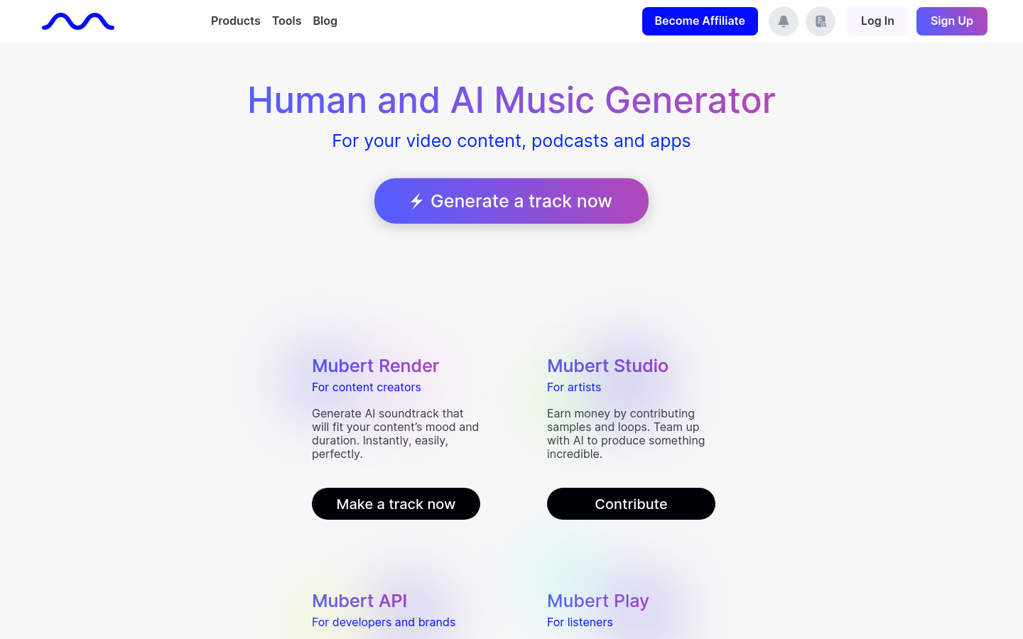 يوفر Mubert واجهة برمجة تطبيقات (API) قوية تسمح للمطورين بدمج الموسيقى التوليدية مباشرة في تطبيقاتهم أو ألعابهم أو مواقعهم الإلكترونية. يتيح ذلك إنشاء مشهد صوتي ديناميكي يدرك السياق ويتطور بناءً على تفاعل المستخدم أو حالة اللعبة. من خلال الاستفادة من بنية Mubert التحتية، يمكن للمطورين توفير تدفقات موسيقية عالية الجودة وغير محدودة دون الحاجة إلى استضافة مكتبات صوتية ضخمة أو إدارة اتفاقيات ترخيص معقدة لمستخدميهم.