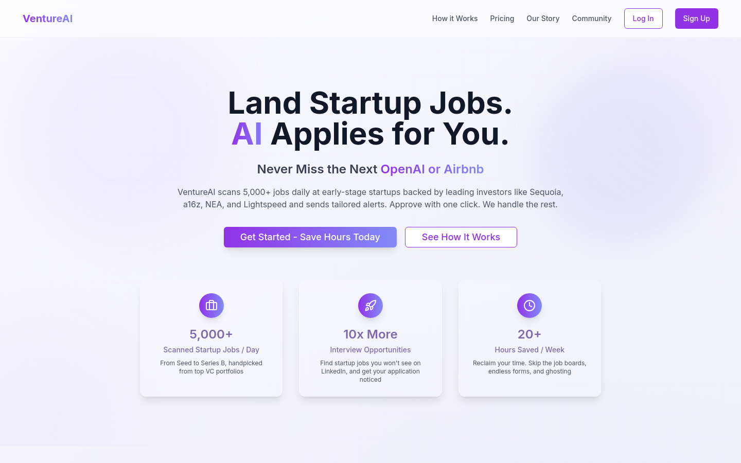 VentureAI is an intelligent job search platform designed to help professionals secure roles at high-growth, VC-backed startups. By scanning over 5,000 job postings daily from top-tier portfolios like Sequoia, a16z, and Lightspeed, the platform eliminates the manual labor of scouring traditional job boards. VentureAI matches candidates with early-stage opportunities (Seed to Series B) based on their specific skills and career goals. Once a user approves a match, the platform’s AI handles the application process, including generating personalized cover letters and submitting materials automatically. With an integrated application tracker and automated outreach tools, VentureAI significantly reduces the time spent on job hunting while increasing visibility with founders.