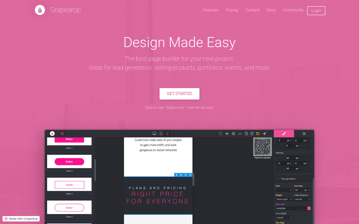 Sie benötigen eine kostengünstige Möglichkeit, eine Online-Präsenz aufzubauen. Grapedrop bietet einen kostenlosen Tarif und eine intuitive Benutzeroberfläche, mit der sie eine professionelle, responsive Website erstellen können, ohne einen Entwickler beauftragen zu müssen.