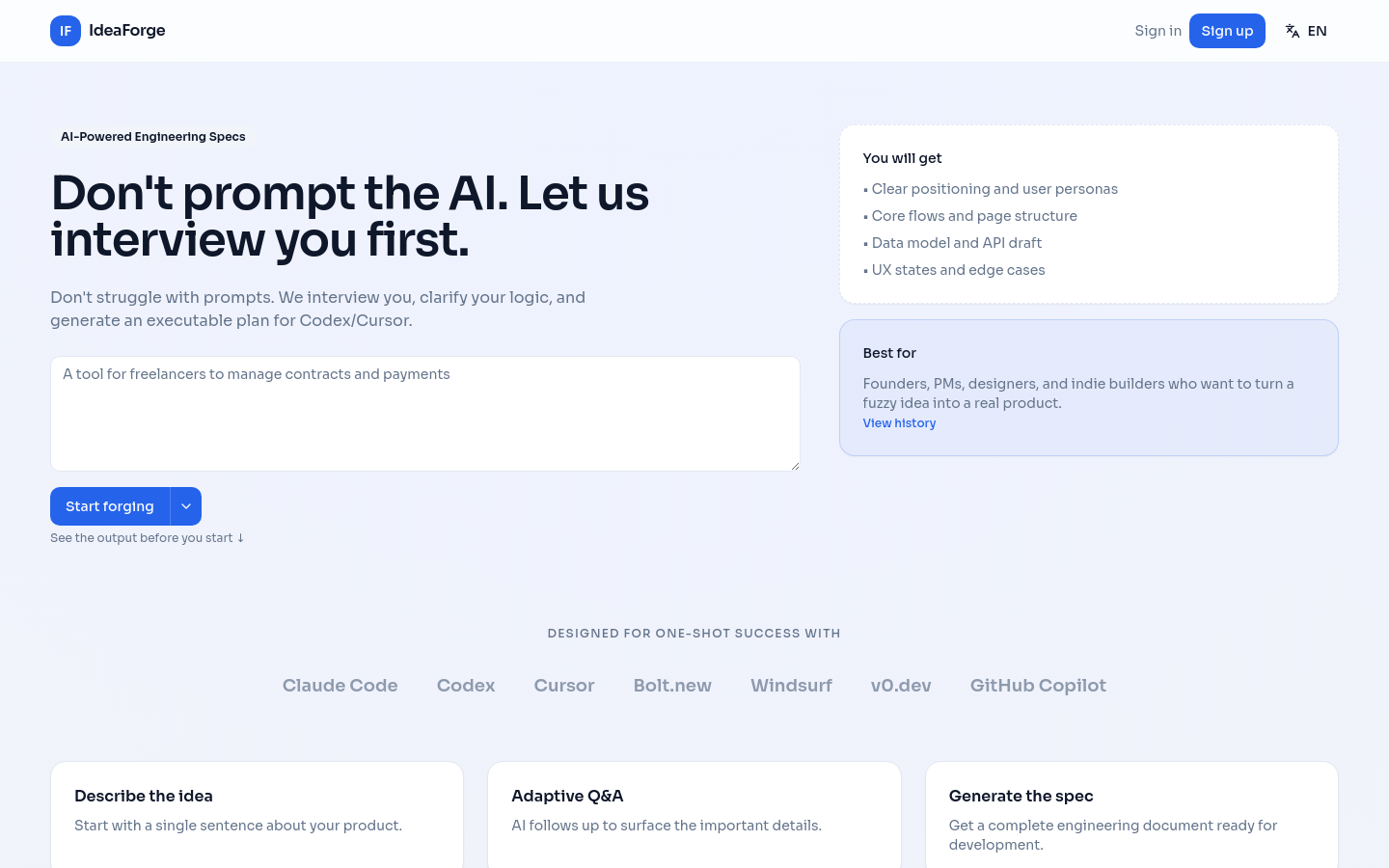 An AI-driven tool designed to help founders and product managers create structured engineering specifications quickly and accurately.