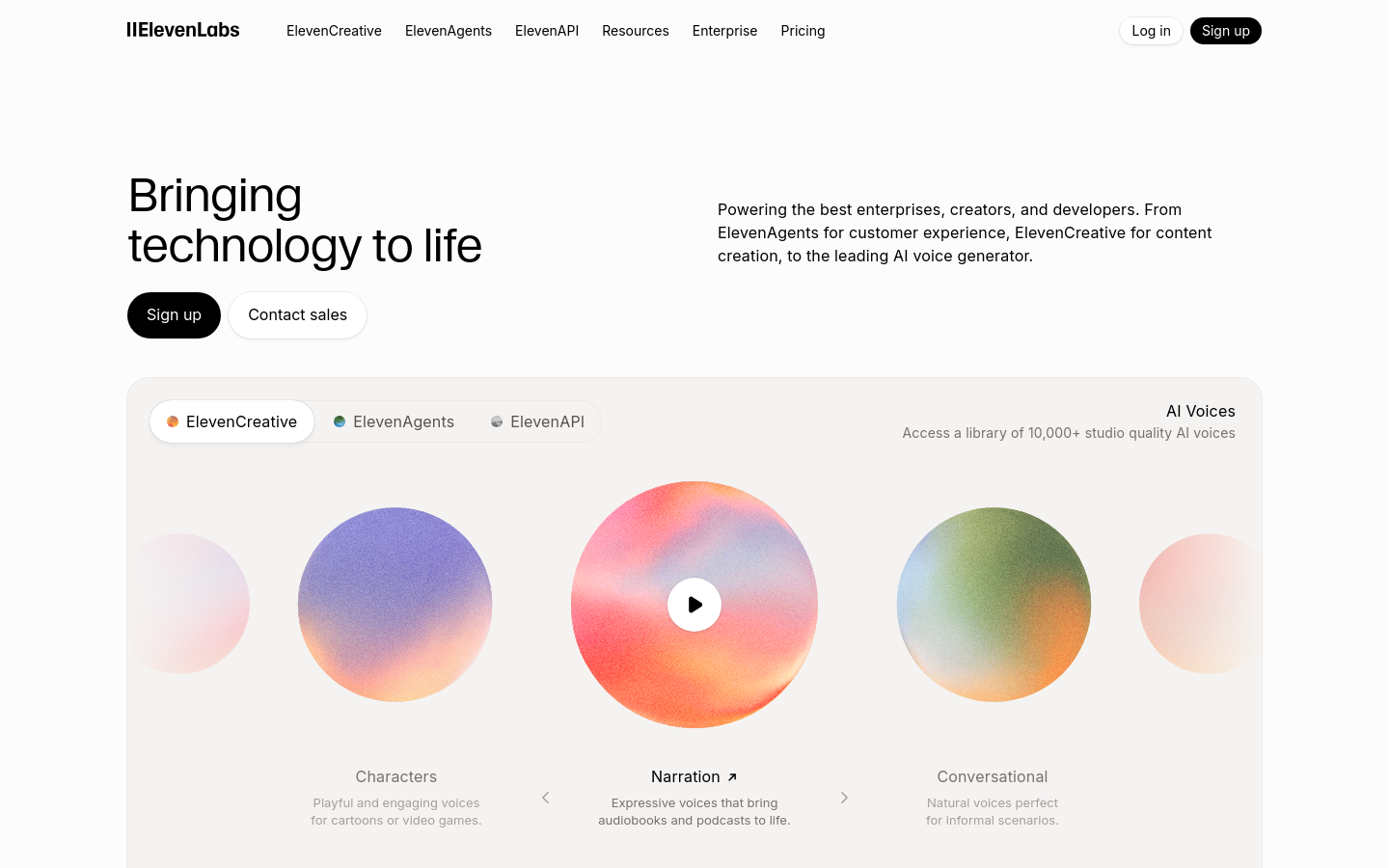 ElevenLabs is a leading AI voice platform that provides realistic voice generation for various applications including audiobooks, podcasts, and customer support.