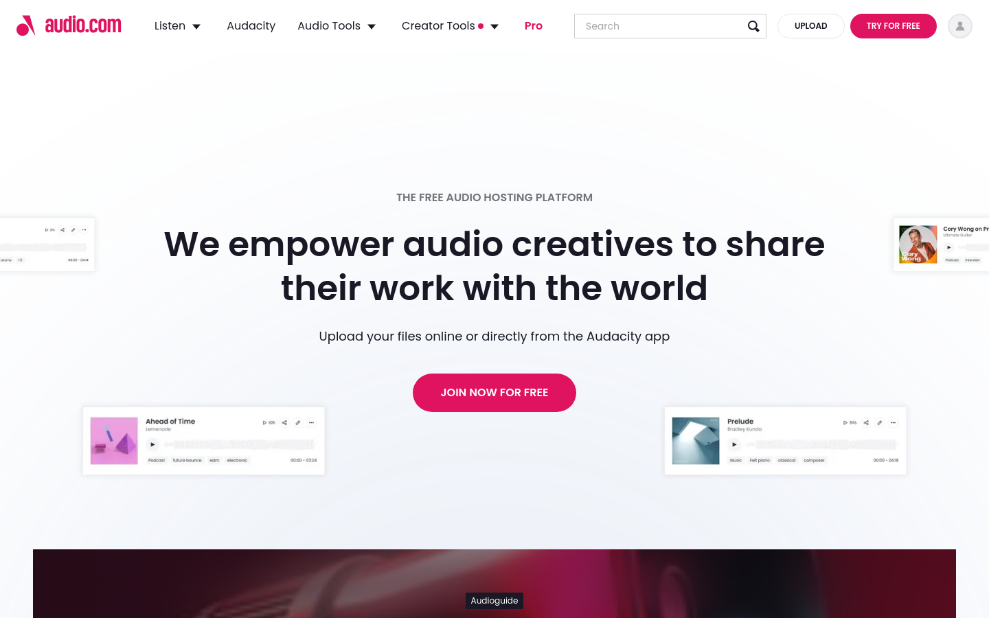 Audio.com is a free audio hosting platform that empowers creatives to share their work with the world.