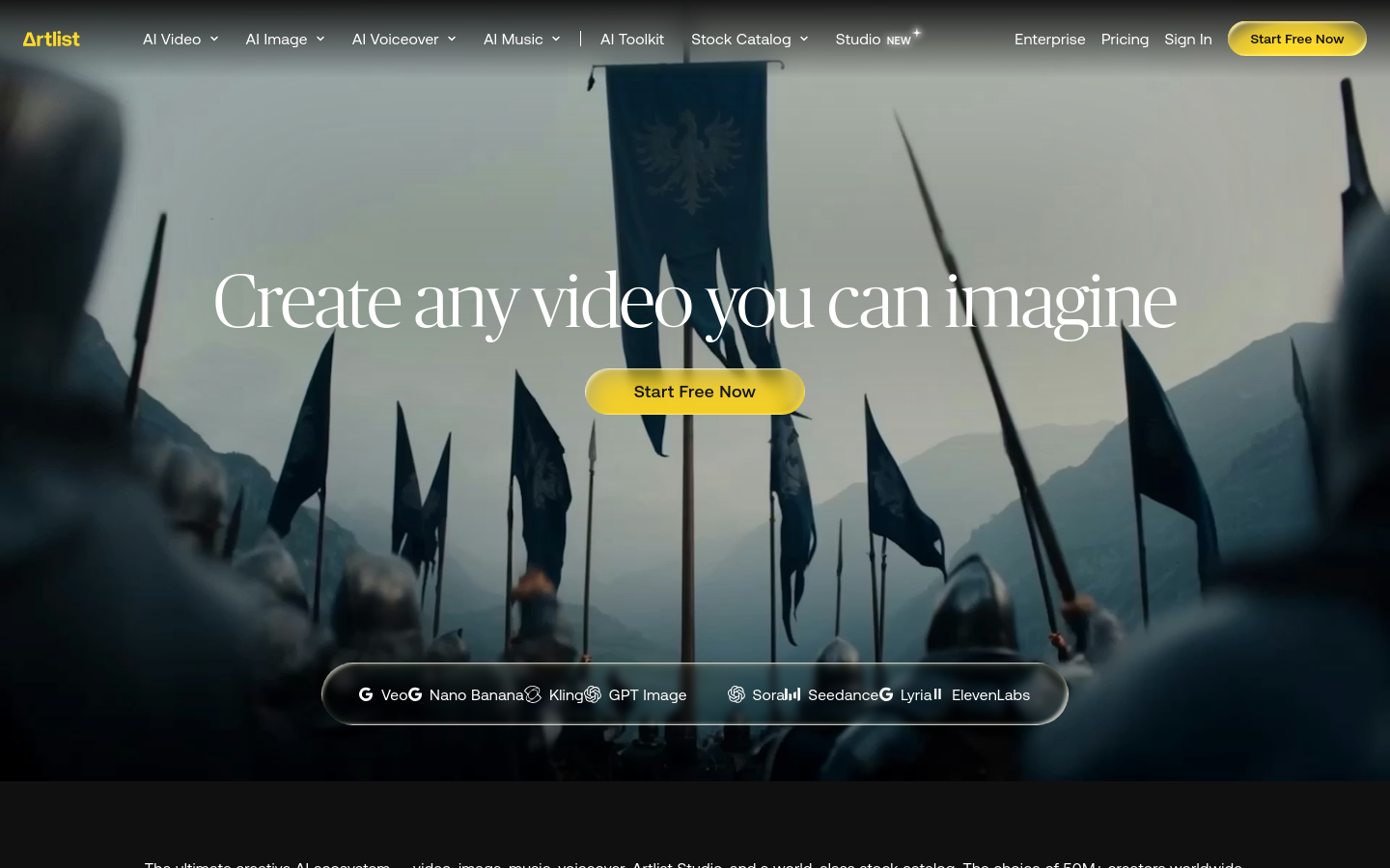 Artlist is an all-in-one platform for video creators, offering AI tools, music, sound effects, and more.