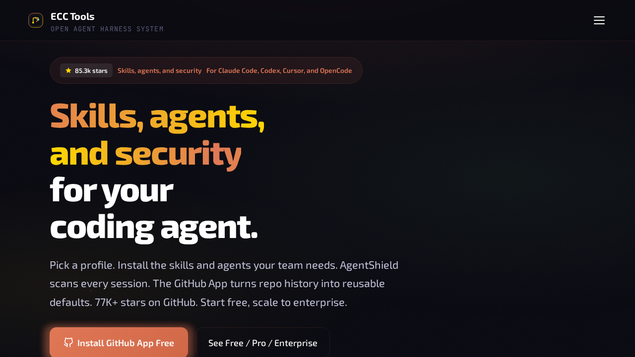 ECC Tools is an open agent harness system designed for automating tasks and enhancing security within GitHub applications. It provides a robust framework for developers to build and manage automated workflows, integrating seamlessly with GitHub's ecosystem. The platform emphasizes ease of use and flexibility, allowing for customization to meet specific project needs. ECC Tools aims to streamline development processes, improve code quality, and bolster overall security posture by automating repetitive tasks and providing proactive security checks. It offers a user-friendly interface and comprehensive documentation to facilitate adoption and efficient utilization of its features.