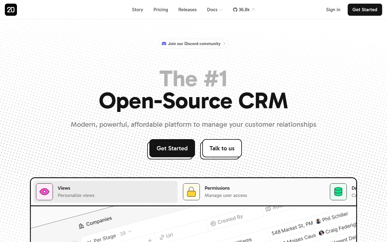 Twenty's open-source nature allows for complete control and customization. Users can access the source code, modify it, and contribute to its development. This contrasts with closed-source CRMs, which limit flexibility and can lead to vendor lock-in. The open-source model fosters community support and ensures long-term viability, with no licensing fees.