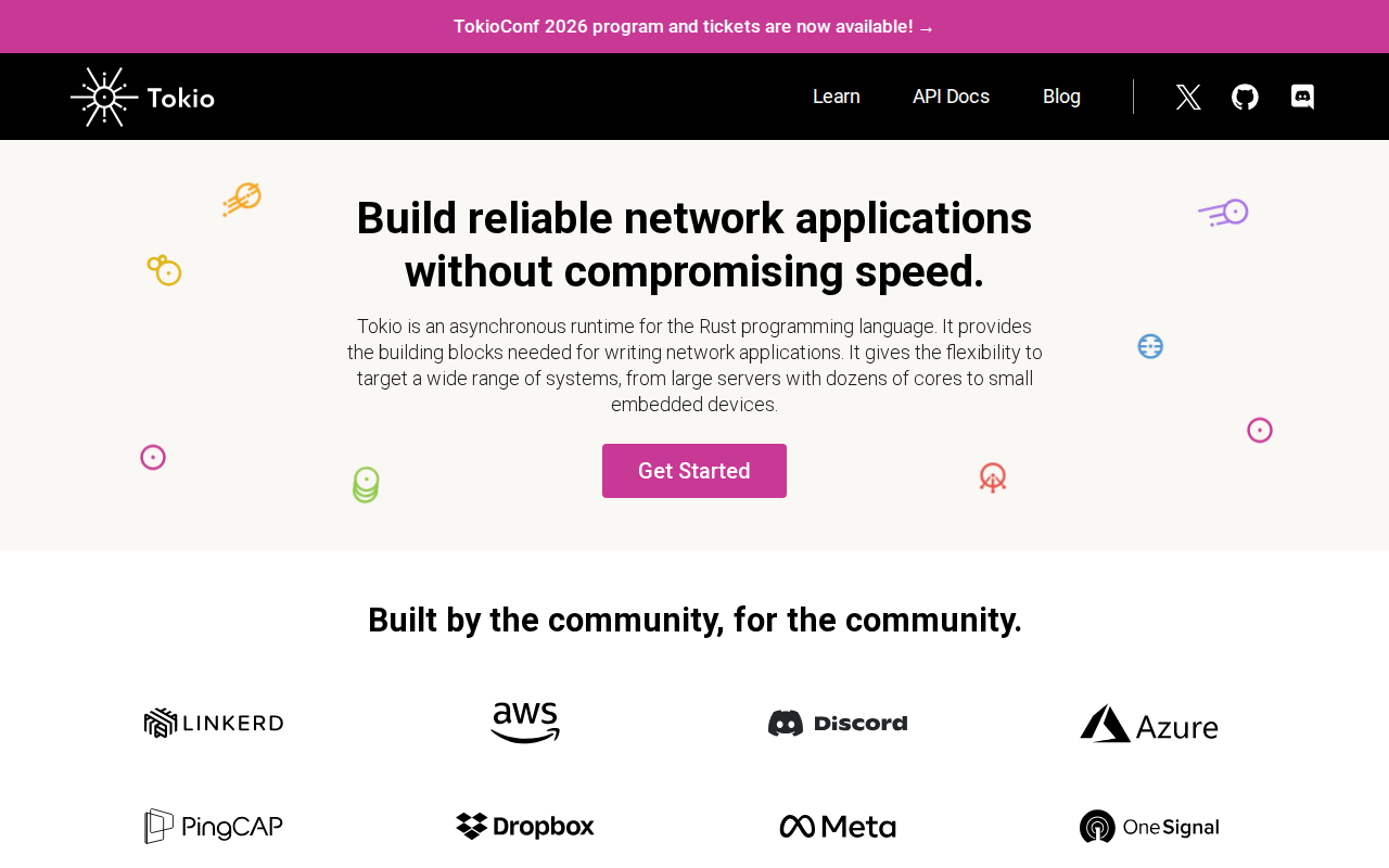Tokio is an asynchronous runtime for the Rust programming language, providing the foundational building blocks for writing high-performance network applications. It offers a memory-safe, thread-safe, and misuse-resistant environment, mitigating common bugs like unbounded queues and buffer overflows. Unlike traditional threading models, Tokio leverages a multi-threaded, work-stealing scheduler, enabling applications to handle hundreds of thousands of requests per second with minimal overhead. Its async/await syntax simplifies asynchronous programming, and its flexible design allows for customization across various systems, from large servers to embedded devices. Developers building network services, APIs, and embedded systems in Rust will find Tokio invaluable for achieving both performance and reliability.