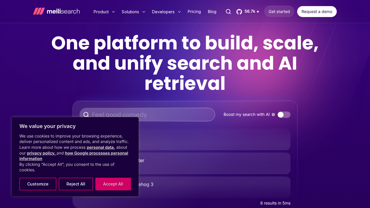 Meilisearch is a flexible and powerful open-source search engine designed for seamless integration into any website or application. It offers lightning-fast search-as-you-type functionality, delivering results in under 50 milliseconds, significantly improving user experience. Unlike traditional search solutions, Meilisearch provides out-of-the-box relevancy and supports features like geosearch, faceting, and hybrid search (combining full-text and semantic search) for more comprehensive results. It distinguishes itself through its ease of deployment, smart presets, and a focus on developer experience. This platform benefits developers, e-commerce businesses, media outlets, and enterprises seeking to enhance their search capabilities and provide users with relevant and efficient information retrieval.