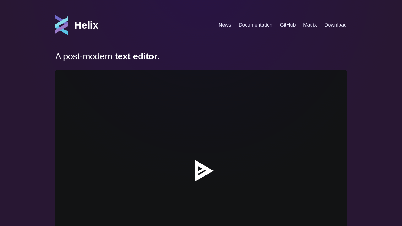 Helix is a post-modern, built-in terminal text editor designed for efficient code editing. It offers a modern set of defaults and a smaller codebase compared to traditional editors like Vim. Helix integrates features like multiple selections, tree-sitter integration for syntax highlighting and code navigation, and language server support for auto-completion and diagnostics. Built in Rust, it avoids Electron, VimScript, and JavaScript, making it suitable for use over SSH, tmux, or a plain terminal. It includes a fuzzy finder, project-wide search, and beautiful themes. While lacking a plugin system currently, one is planned. Helix distinguishes itself from Kakoune by integrating more features and from Vim by starting from scratch with modern defaults.