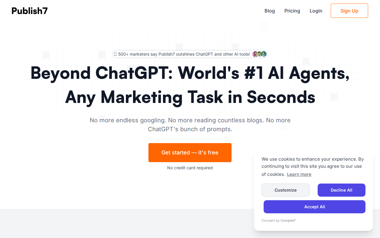 Publish7 offers an intuitive and easy-to-use interface, making it accessible to marketers of all skill levels. The interface simplifies complex AI processes, allowing users to generate marketing content and strategies with minimal effort. This user-friendliness ensures that even those without technical expertise can leverage the power of AI for their marketing needs.