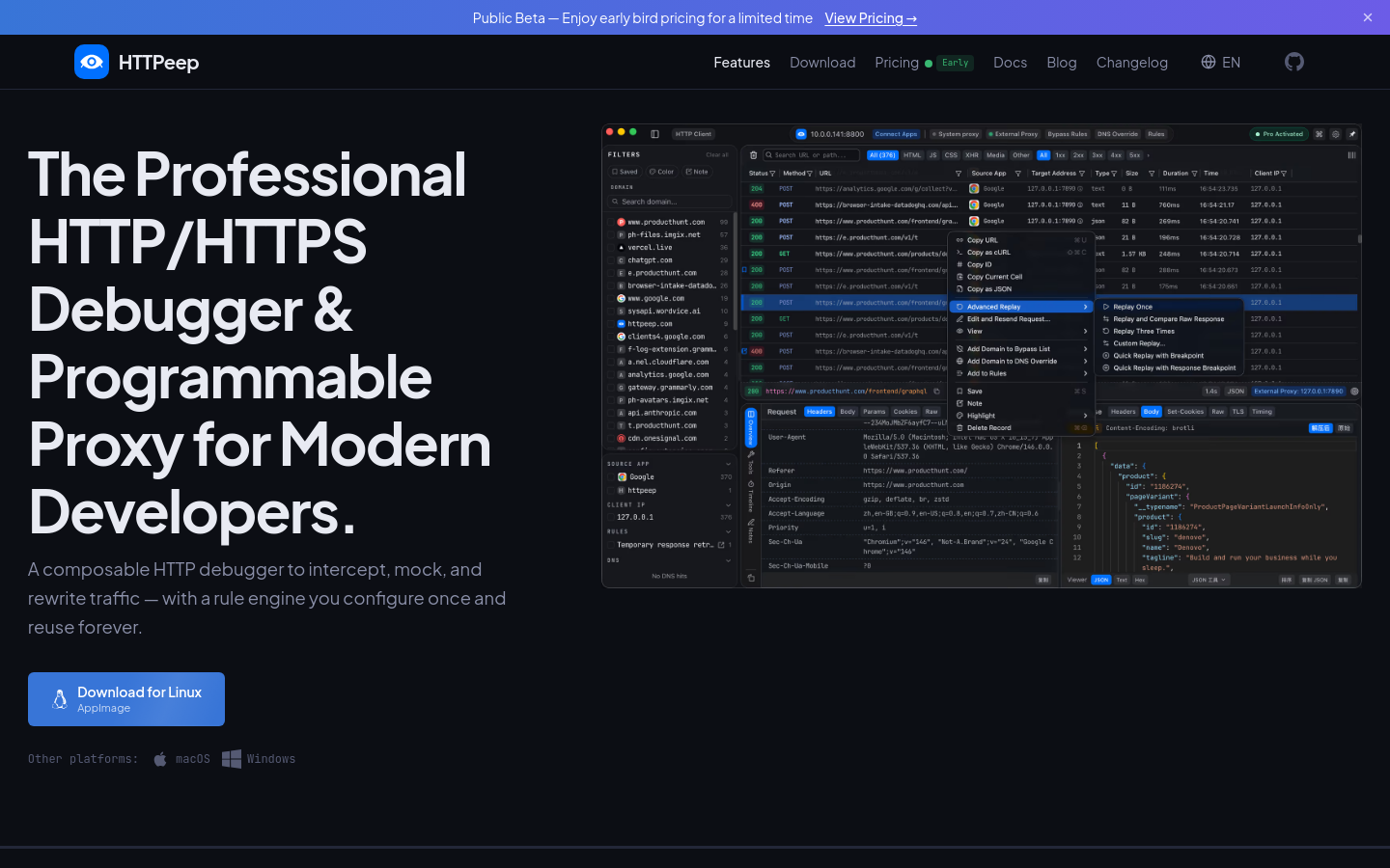 HTTPeep is a Rust-based web debugging proxy designed to solve the common friction of intercepting, inspecting, and rewriting HTTP/HTTPS traffic during development. By providing a robust, cross-platform environment for macOS, Windows, and Linux, it allows developers to gain full visibility into network interactions. Whether you are debugging complex API integrations or testing how your application handles production-level network failures, this tool provides the granular control needed to manipulate requests and responses in real-time. Beyond simple inspection, the platform features a powerful rule-based engine that enables developers to map remote production traffic to local files or services. This capability is essential for frontend and full-stack teams who need to hot-reload assets or test new features without the overhead of modifying host files or waiting for backend deployments. With additional support for network throttling and a terminal-based interface for remote server debugging, it serves as a comprehensive toolkit for engineers who need to reproduce production issues locally and ensure application resilience.