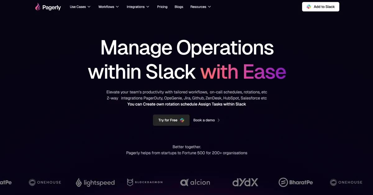/pagerly Slack command to manage on-call schedules, acknowledge alerts, and create incidents.,6. Review incident reports and analytics within Slack to identify areas for improvement.DevOps teams use Pagerly to automate on-call rotations, receive real-time alerts in Slack, and streamline incident response. They can quickly identify and resolve issues, reducing downtime and improving overall system reliability. This allows them to focus on development and deployment tasks.