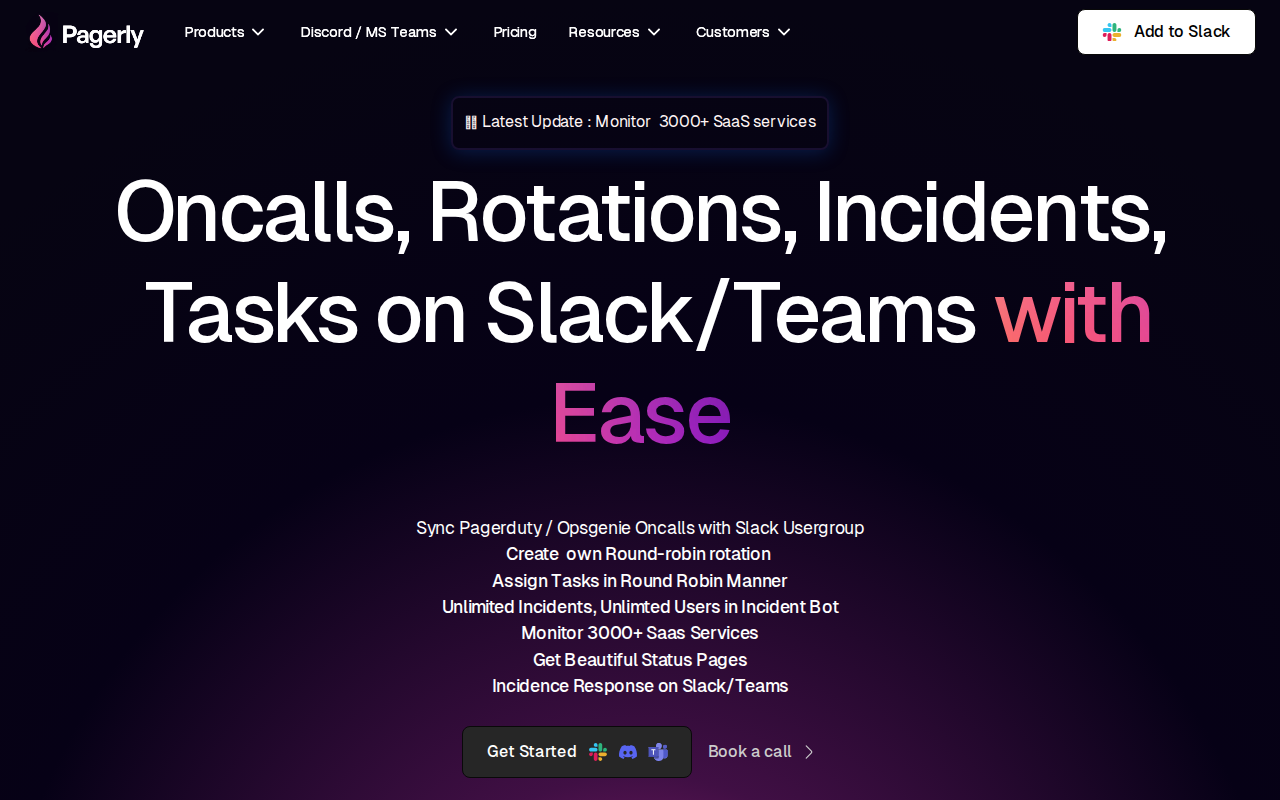 Pagerly streamlines on-call management and incident response directly within Slack. It provides automated on-call scheduling, incident ticketing, and real-time operational insights, eliminating the need to switch between multiple tools. Unlike traditional solutions, Pagerly integrates seamlessly with Slack, offering a centralized hub for alerts, notifications, and collaboration. Key features include automated rotations, customizable escalation policies, and detailed incident reports. This approach leverages Slack's existing communication infrastructure to improve response times and reduce operational overhead. Pagerly is ideal for DevOps teams, SREs, and any organization seeking to improve their incident management process and reduce downtime.