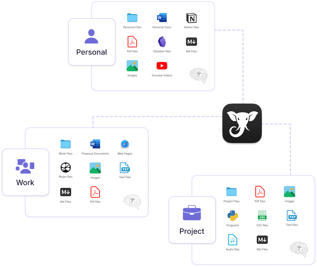 Elephas provides a dedicated workspace for organizing and managing your documents, notes, and research. This workspace is designed to be private and secure, allowing you to store and access your information without concern for data breaches. The workspace features are not explicitly detailed on the website, but are implied.
