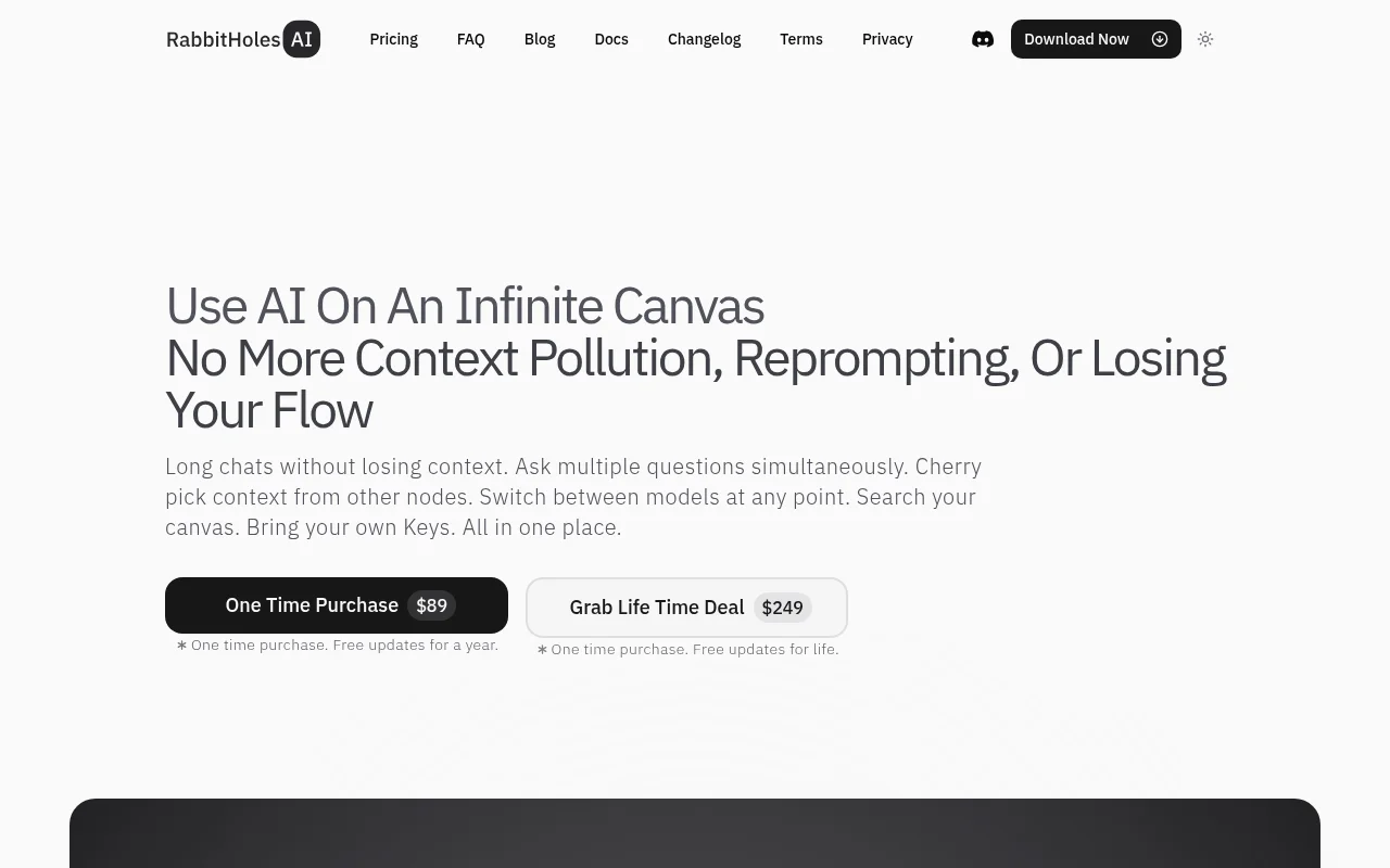 RabbitHoles AI provides an infinite canvas for researchers to explore and interact with multiple AI models simultaneously. It eliminates context pollution and tab-switching by allowing users to visualize and link conversations across different AI platforms like ChatGPT, Claude, and Gemini. The platform's unique visual knowledge mapping capabilities and deep research workflows enable users to connect ideas and synthesize information more effectively than traditional chat interfaces. This tool is ideal for researchers, students, and professionals who need to conduct in-depth AI-assisted research and analysis, offering a streamlined and efficient workflow for complex projects.