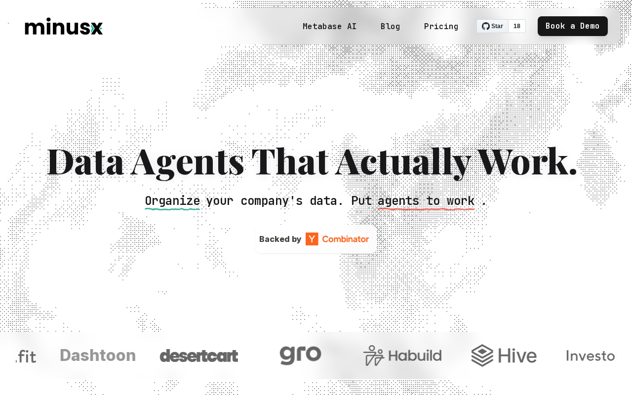 Minusxは、データエンジニアリングタスクのライフサイクルを自動化するために設計されたエージェント型データプラットフォームです。手動でのSQL構築やダッシュボードの保守を必要とする従来のBIツールとは異なり、Minusxは自律型エージェントを導入し、データモデルの構築、テスト、改善を行います。自動テストと検証を実行する自己改善型モデルを活用することで、生データソースと実用的なインサイトの間のギャップを埋めます。本プラットフォームは、ビジネス上の疑問からデータ利用までのレイテンシを短縮し、自然言語クエリを本番環境グレードのデータパイプラインへと効率的に変換したいデータチーム向けに構築されています。