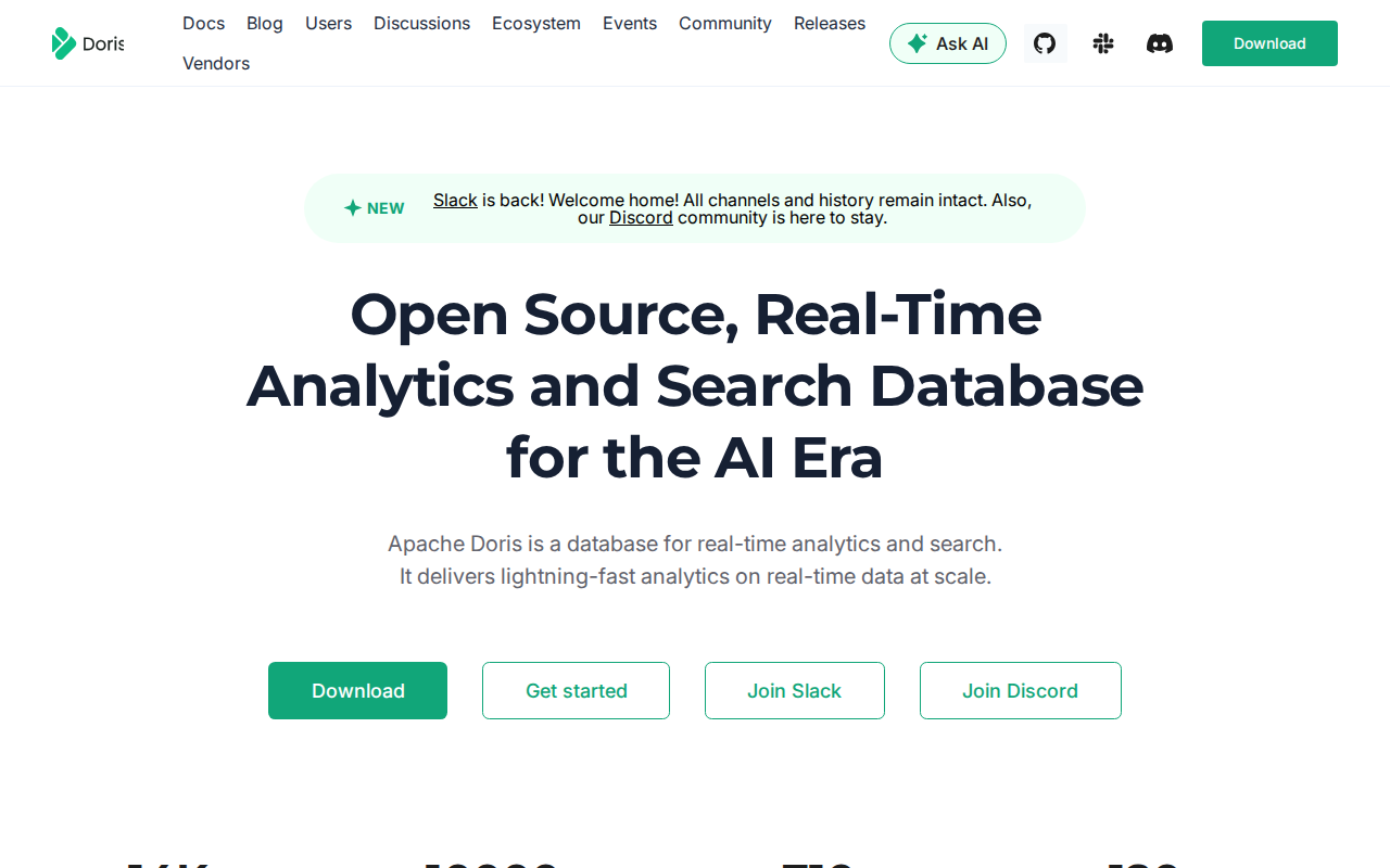Apache Doris คือฐานข้อมูลวิเคราะห์ประสิทธิภาพสูงแบบเรียลไทม์ที่ใช้สถาปัตยกรรม Massively Parallel Processing (MPP) โดดเด่นด้านการวิเคราะห์ข้อมูลหลายมิติ, Ad-hoc queries และ Point queries ที่มีความพร้อมกันสูง ต่างจากระบบ OLAP แบบเดิมที่ต้องใช้ไปป์ไลน์ ETL ที่ซับซ้อน Doris รองรับการนำเข้าข้อมูลแบบเรียลไทม์จากแหล่งต่างๆ เช่น Kafka และ Flink โดยให้ความหน่วงระดับต่ำกว่าวินาทีสำหรับการ Join และ Aggregation ที่ซับซ้อน ด้วย Vectorized execution engine และ Cost-based optimizer (CBO) ที่เป็นเอกลักษณ์ ทำให้สามารถจัดการชุดข้อมูลระดับ Petabyte ได้โดยยังคง Throughput สูง จึงเป็นทางเลือกที่เหนือกว่า Hadoop-based stacks หรือ Data warehouse แบบเดิมสำหรับการวิเคราะห์ด้วย AI