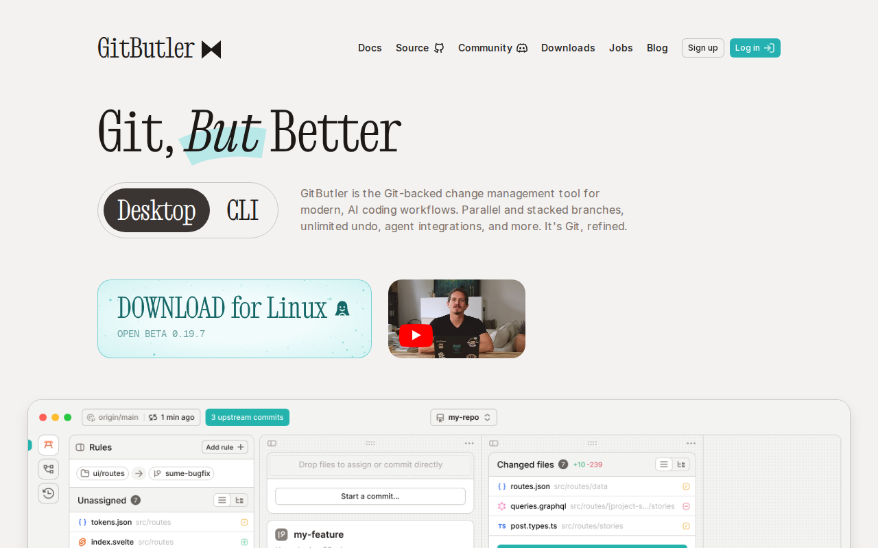 GitButler คือ Git client เฉพาะทางที่ออกแบบมาเพื่อขจัดความยุ่งยากของเวิร์กโฟลว์แบบ branch-based แบบเดิมๆ ต่างจาก CLI หรือ GUI ทั่วไปที่บังคับให้ผู้พัฒนาต้องจัดการ commit ตามลำดับ GitButler ใช้ระบบไฟล์เสมือนเพื่อติดตามการเปลี่ยนแปลงแบบเรียลไทม์ ช่วยให้ผู้พัฒนาสร้าง 'virtual branches' ได้หลายรายการพร้อมกัน ทำให้สามารถทำงานกับฟีเจอร์หรือแก้ไขบั๊กหลายอย่างไปพร้อมกันได้โดยไม่ต้องเสียเวลาสลับบริบทหรือทำ rebasing ที่ซับซ้อน ด้วยการแยก working directory ออกจากประวัติการ commit จึงมอบประสบการณ์การพัฒนาที่ลื่นไหลและไม่เป็นเส้นตรง ซึ่งผสานรวมเข้ากับ Git repository ที่มีอยู่ได้อย่างสมบูรณ์ เหมาะอย่างยิ่งสำหรับทีมวิศวกรรมที่ต้องการความรวดเร็วสูง