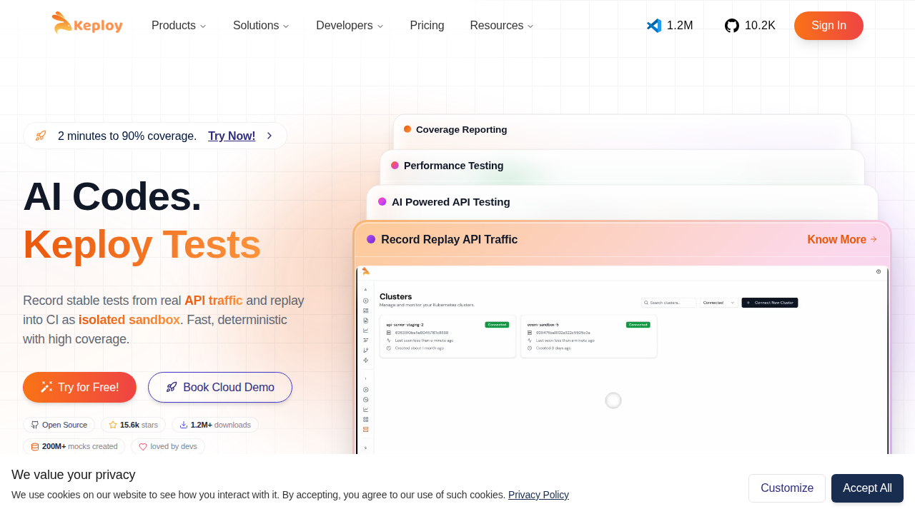 Keploy 是一個開源的 AI 驅動工具,旨在自動化 API、整合和單元測試。它從真實的 API 流量中生成測試案例和模擬/存根,使開發人員能在幾分鐘內達到高達 90% 的測試覆蓋率。與需要手動創建和維護測試的傳統測試方法不同,Keploy 利用 AI 記錄和重播 API 交互,確保確定性和可靠的測試。這種方法減少了測試時間,提高了代碼質量,並簡化了測試工作流程。Keploy 的獨特價值在於它能夠自動創建和維護測試,使其成為尋求高效和全面測試解決方案的開發人員和團隊的理想選擇。