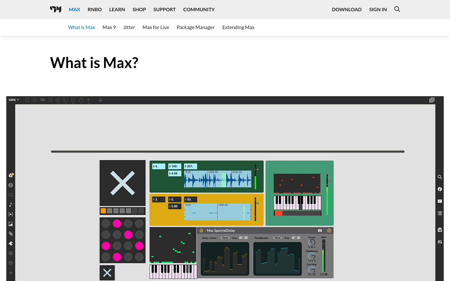 Yêu cầu một cầu nối giữa cảm biến vật lý, phương tiện hình ảnh và âm thanh. Max cung cấp chất keo cần thiết để đồng bộ hóa các yếu tố khác biệt này trong một môi trường biểu diễn trực tiếp.
